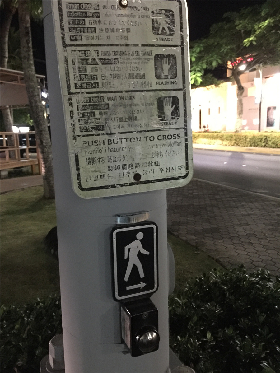 2、关岛马路的红绿灯是要行人自行按键才会启动