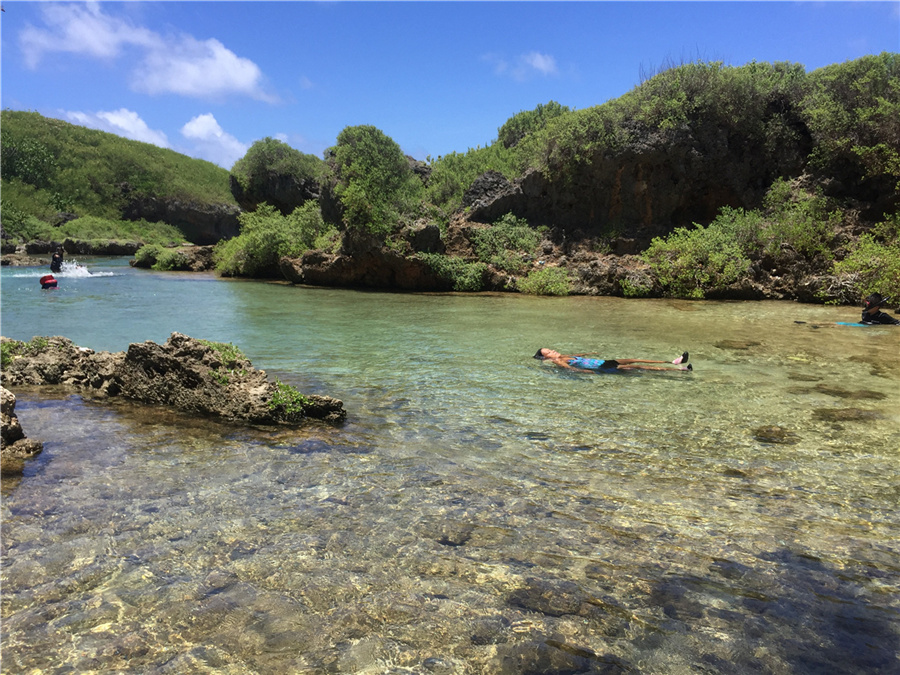 海水清澈见底,底下有鱼游都能看到