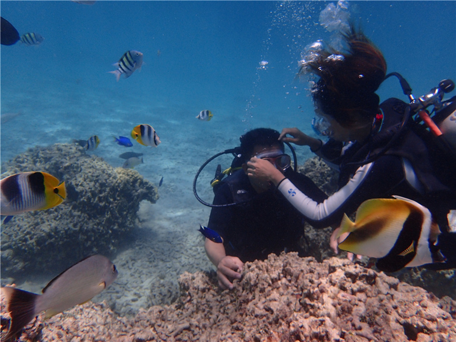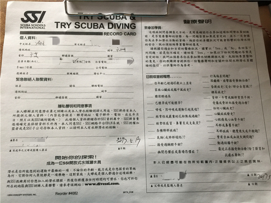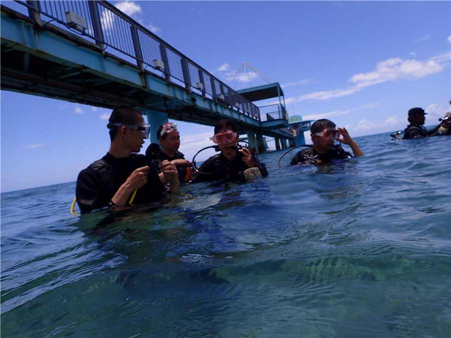 先在水边练习下潜水,还好有个助教是位台湾美女,沟通上无障碍