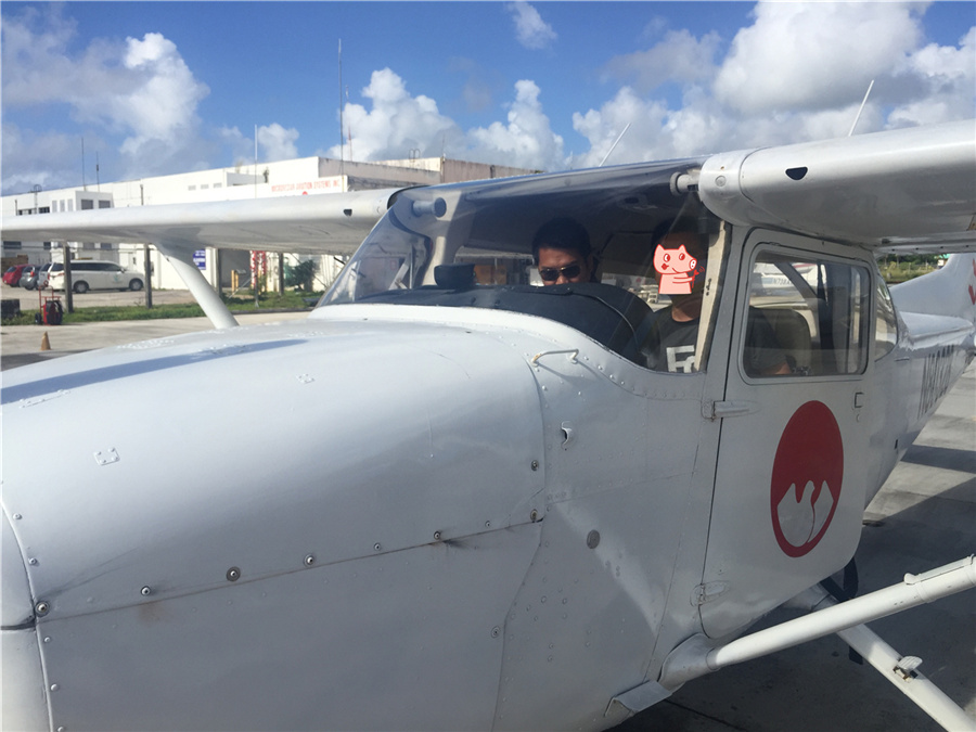 飞机的项目也是提前一天在网上约好的,这个开飞机的地方跟我们坐的民航客机在同一个机场,指定时间接我们到达这里,日本人开的,去到现场先在电视上看一下教学视频(有中文)