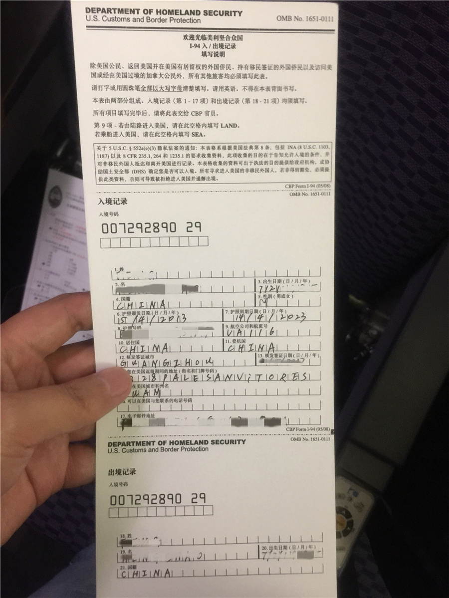 差不多到时,空姐会给旅客入境卡填写,中文好说,按提示填下就好