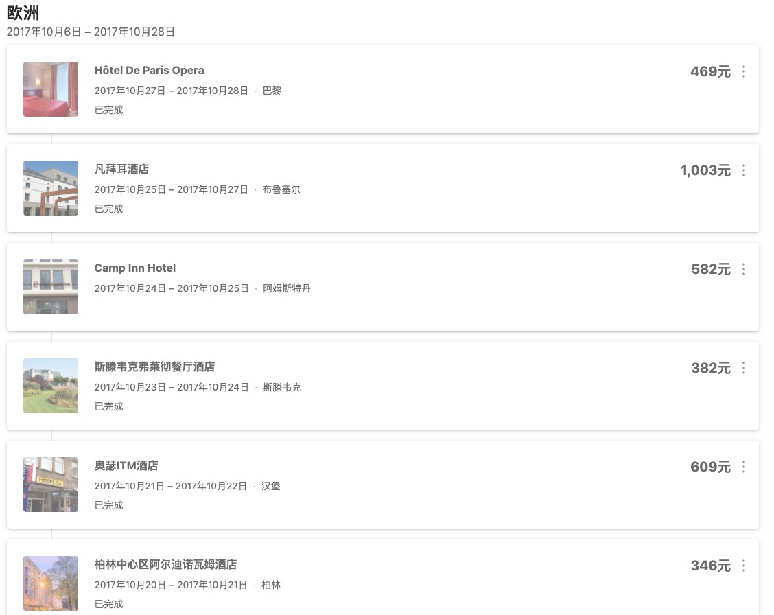 继5月份关岛回程后(详细可见美国关岛篇),回来后就去申请办理了欧洲的申根签证(可以去到欧洲除英国外的26个国家),本次行程还有另外两位伙伴(某旅行网站上约伴的),一行三人,我来搞定行程计划,酒店预定,开车等,另外一位英语稍强点的搞不懂的她来翻译,还有一位经验丰富的老司机换换手开车,后面在半路上又短时间增加了1位,欧洲自由行不大建议一个人前往,抢劫偶有发生,很晚最好别单独出门,约伴前往至少有个照应,拍拍照,这次行程是2017年10月5日至28日,全程24天,经过7个国家,法国,瑞士、德国、奥地利、捷克、荷兰、比利时,法国巴黎进出,车也是在巴黎机场租还的,整个行程出发前原本没想过去荷兰和比利时,后面临时调整减掉意大利增加这两个,订酒店也是一样,今天再订下一天的,好玩的地方就多停留下,没意思的就随时转下一目地的,毕竞自由行嘛,随机的很。