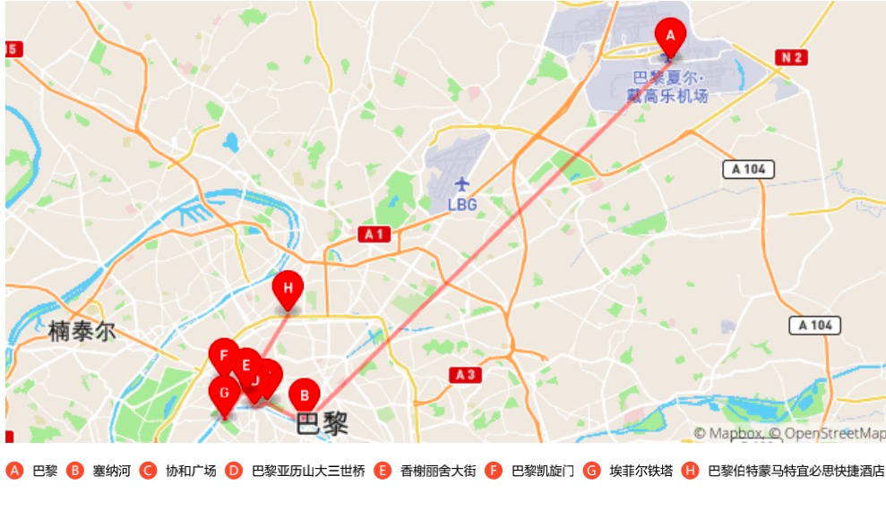 今天计划的行程,塞纳河 、协和广场 、 香榭丽舍大街 、 巴黎凯旋门、埃菲尔铁塔、巴黎圣母院