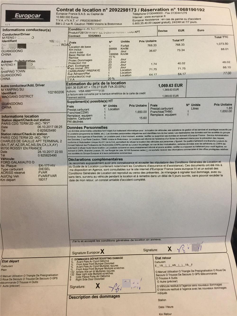 出了机场,第一时间去到Europcar在机场的提车点,提车点接待美女会说中文,方便很多,现场加购了保险