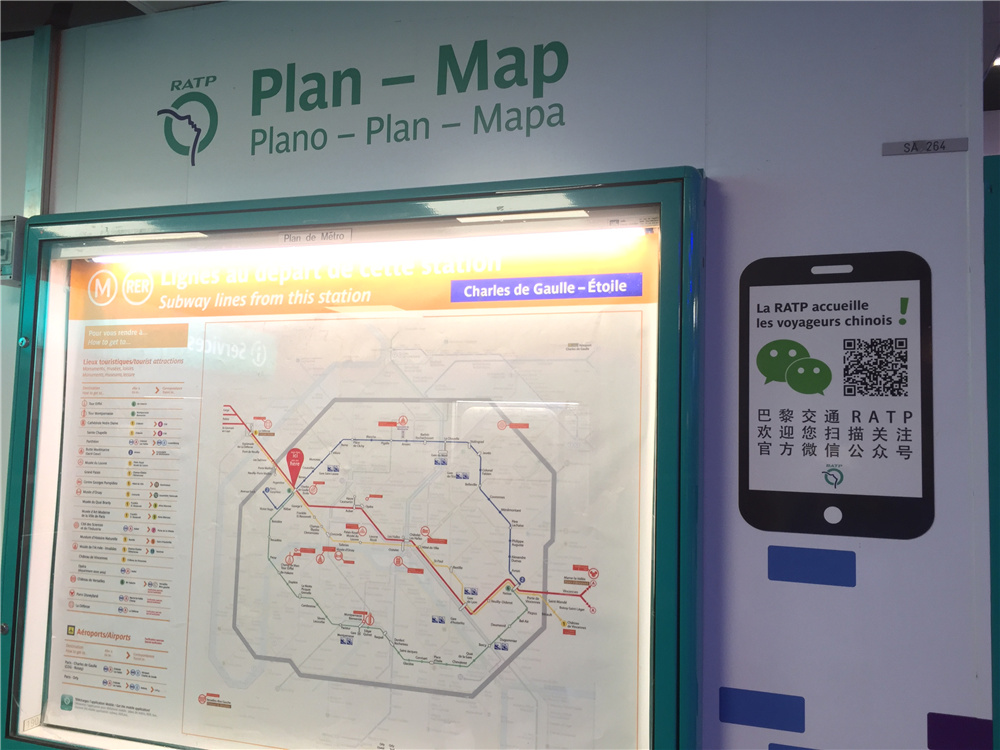巴黎的停车很麻烦也很贵,决定体验下当地的地铁,巴黎地铁有一百多年的历史了(1900年开始运营),看起来是没有国内地铁那么新净和现代化,十几条线基本能够到达主要的地方还是比较方便