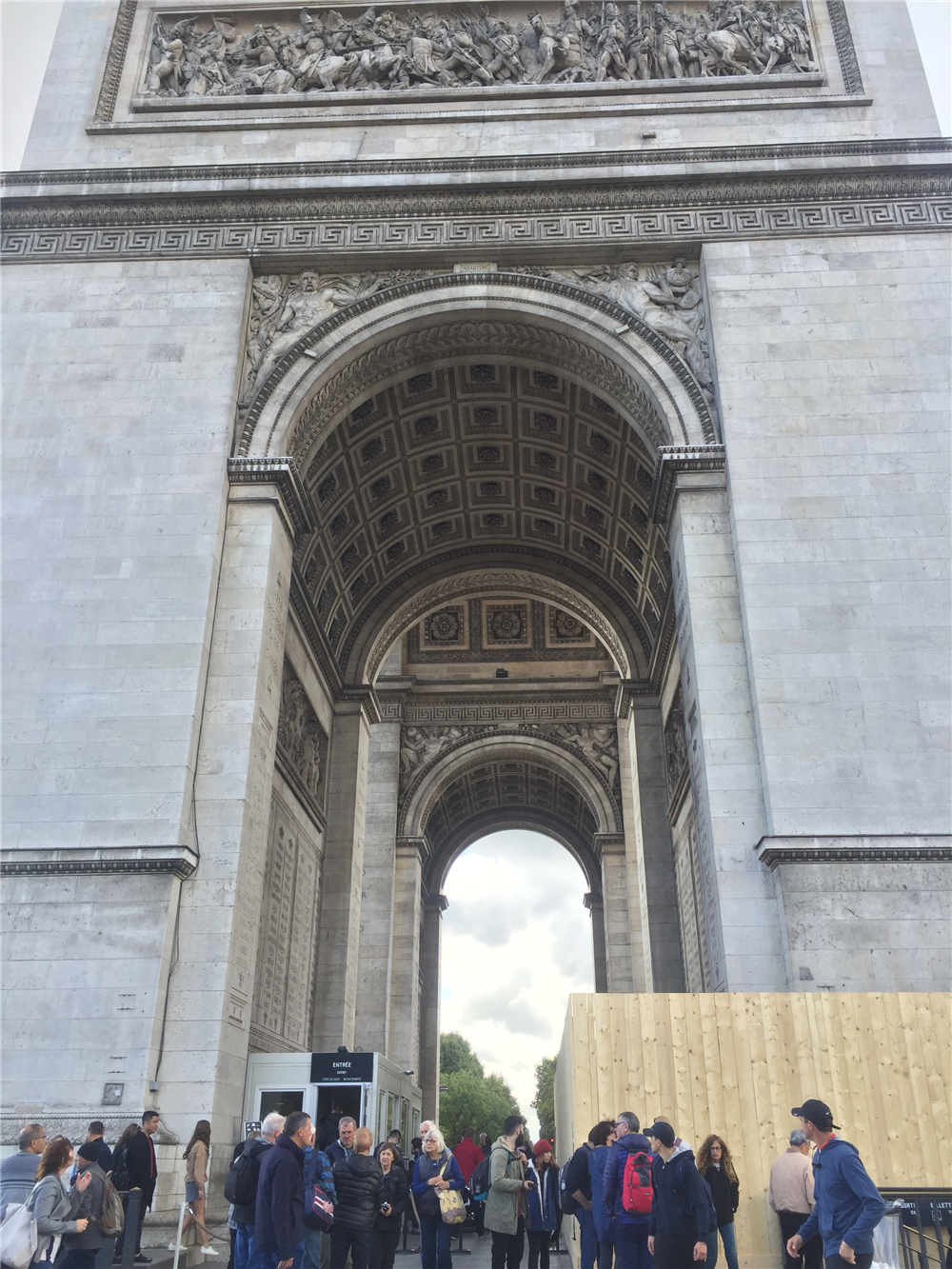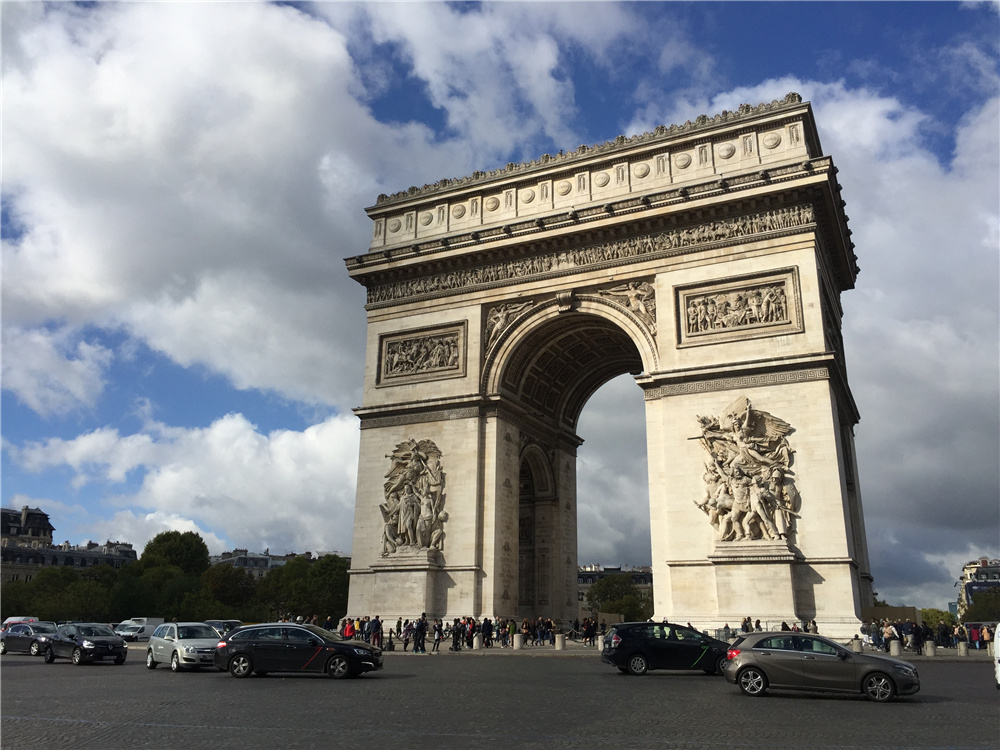 拿破仑为纪念1805年打败俄奥联军的胜利,于1806年下令修建“一道伟大的雕塑”,迎接日后凯旋的法军将士,凯旋门建造期间继继续续,终于在1836年7月29日举行了落成典礼