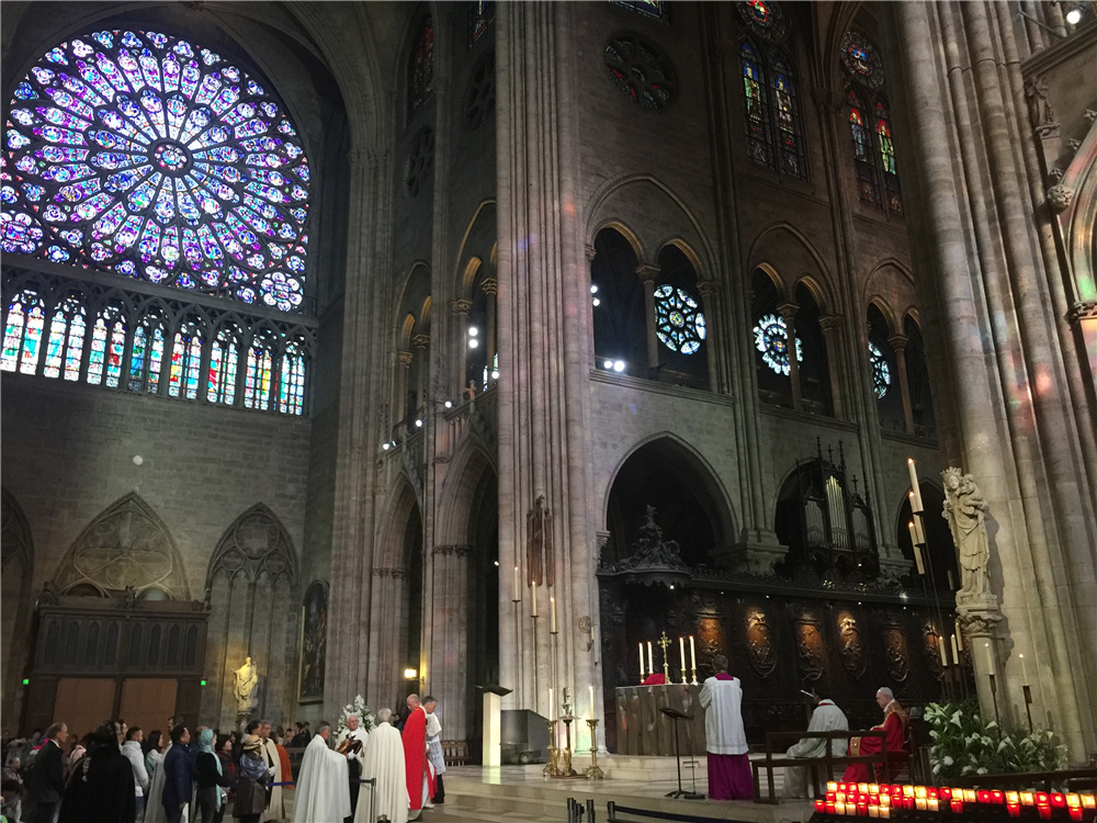 到达巴黎圣母院,巴黎圣母院始建于1163年,至今已有850年历史了,挺宏伟的一个哥特式的建筑,不需要门票