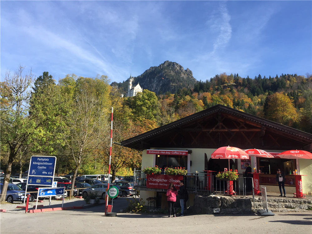 到了天鹅堡停车场,抬头就能看到天鹅堡