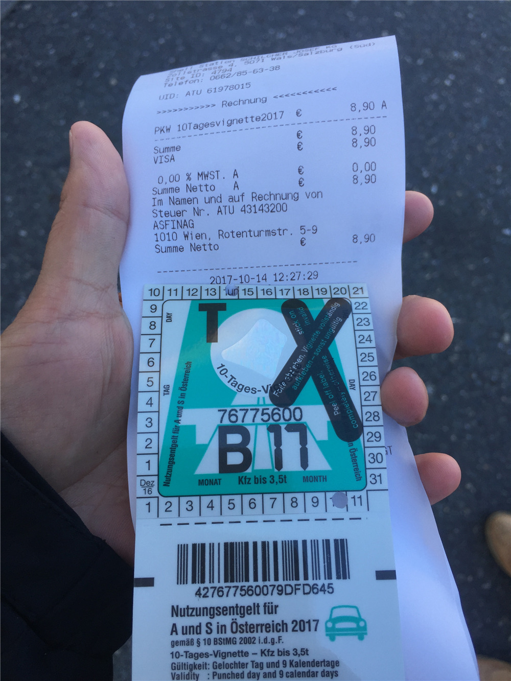 在入境奥地利前,提前买好过高速票,可以在加油站买,我买的是10天有效期,8.9欧