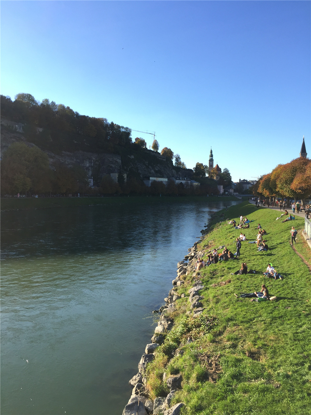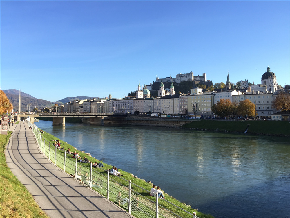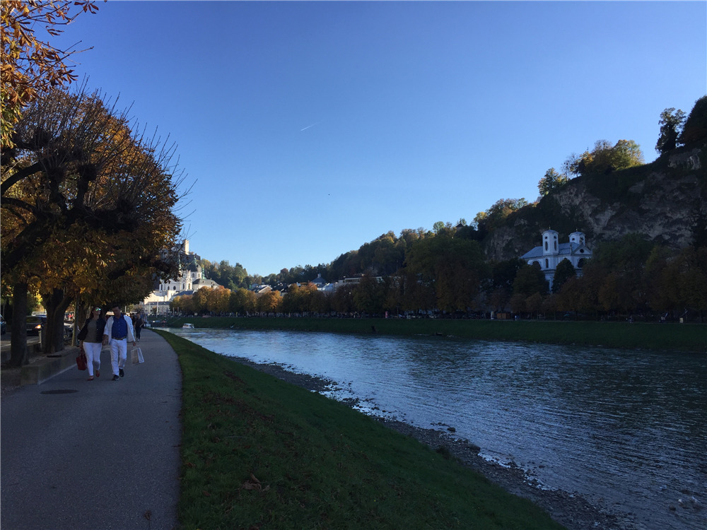 萨尔茨堡,奥地利的第四大城市,莫扎特的出生地,这条河是萨尔察赫河,今天也主要是在河的两边逛逛