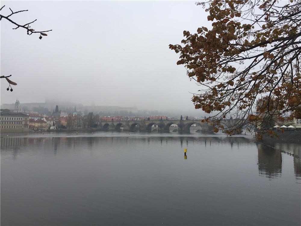 布拉格伏尔塔瓦河,远处看到的就是查里大桥