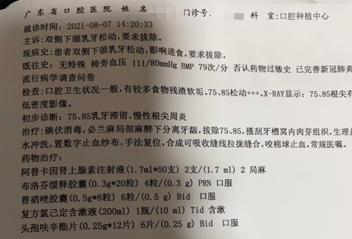 想着拨牙痛,种牙也痛,费用还不低,1万元左右1颗,有点肉痛,当时就吃点消炎药缓解了下,昨天开始又更痛了,长痛不如短痛,下定决心先拨到再种植。