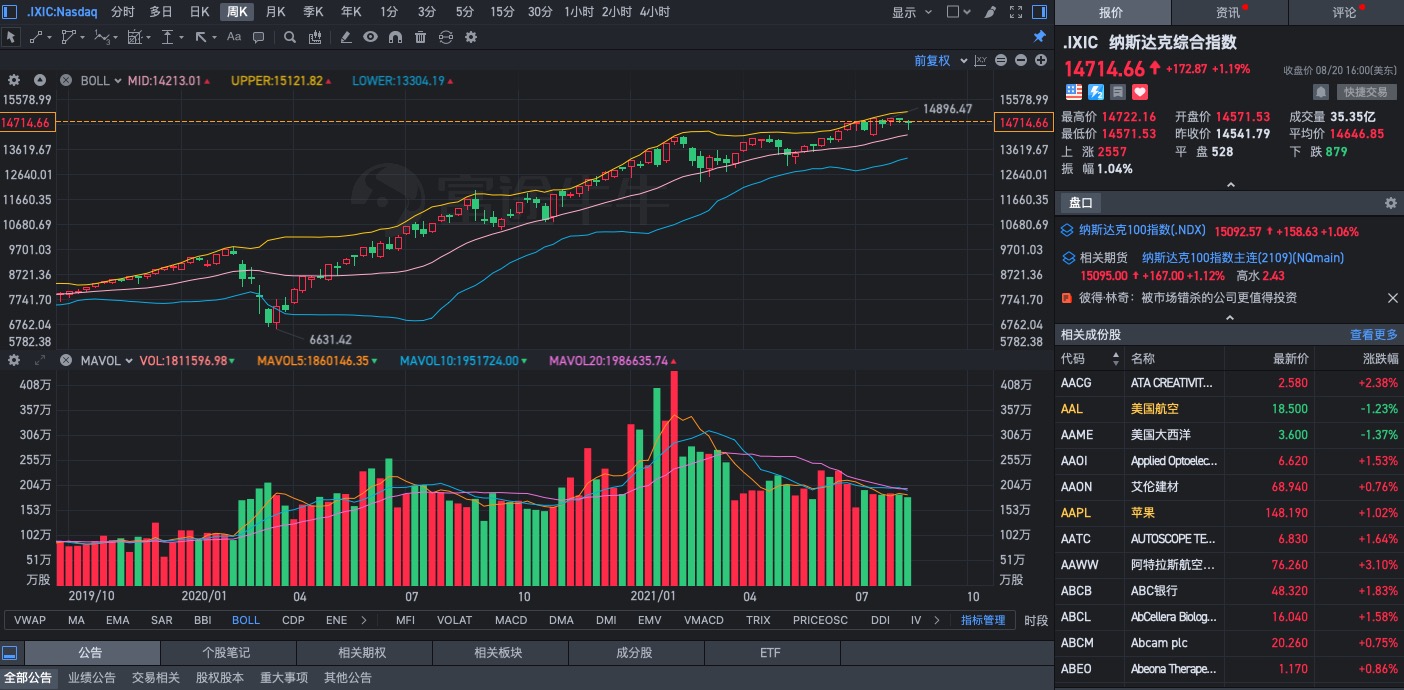 纳斯达克指数,继续一路上涨行情,近新高14716,年内涨幅14.17%