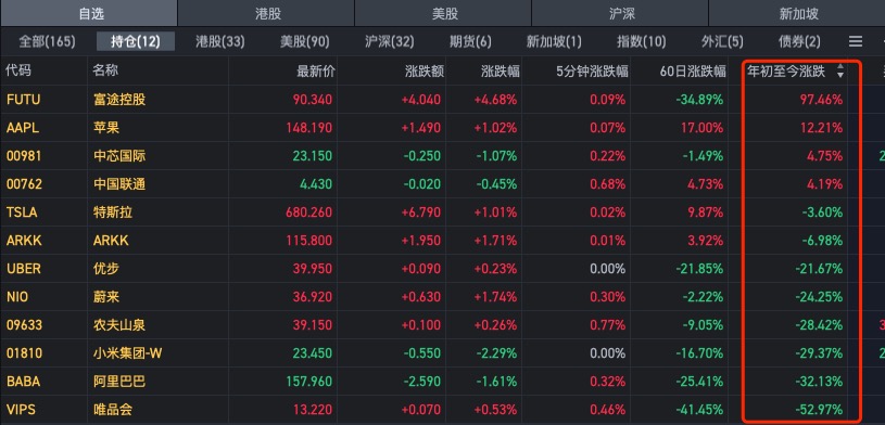 目前持仓个股,今年以来的涨跌,绿多红少,中概股的这波行情与强监管有关,目前的估值个人认为是偏底的,我会选择持有坚守,有些还会进行加仓。