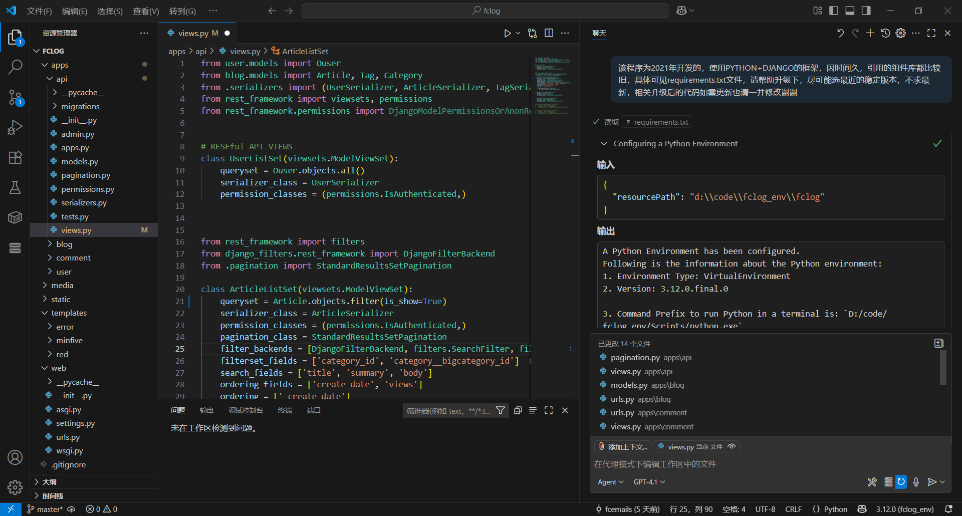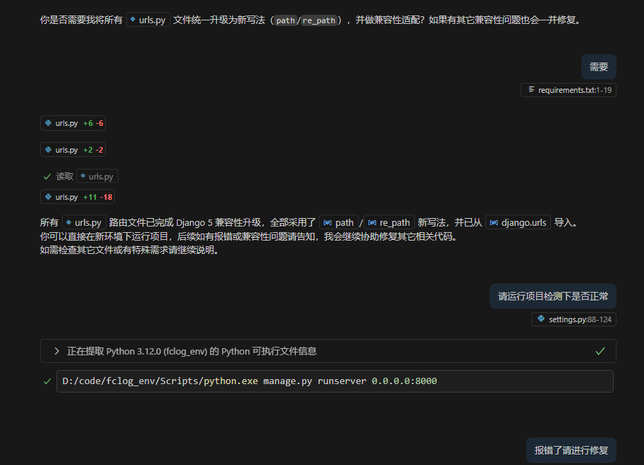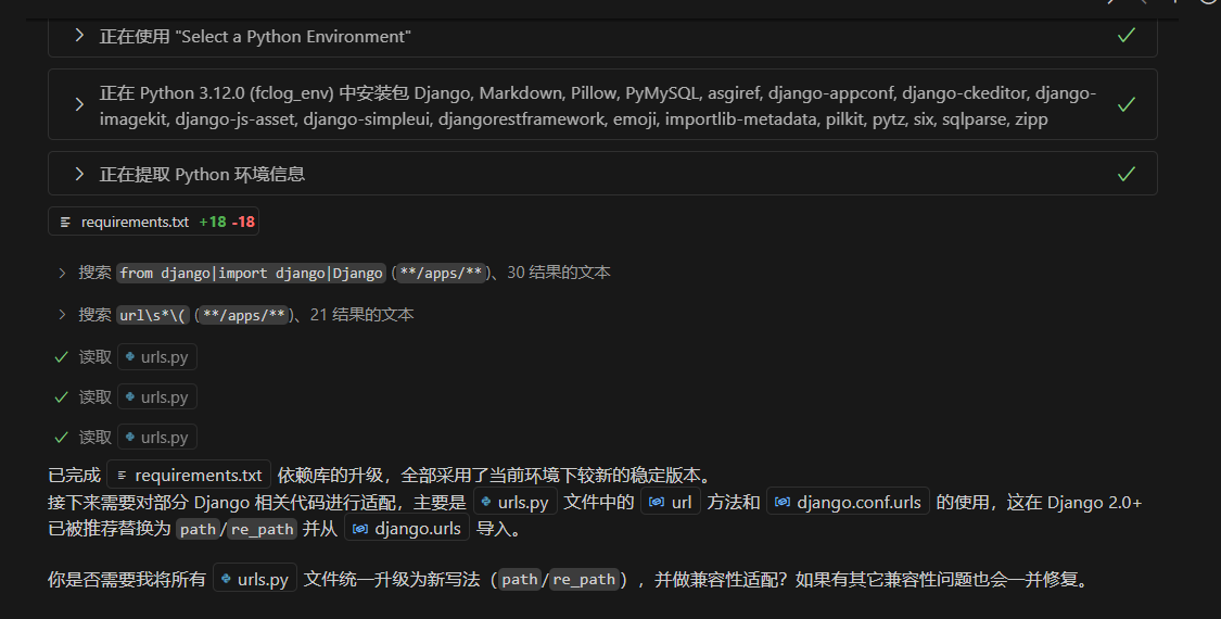 该程序为2021年开发的,使用PYTHON+DJANGO的框架,因时间久,引用的组件库都比较旧,具体可见requirements.txt文件,请帮助升级下,尽可能选最近的稳定版本,不求最新,相关升级后的代码如需更新也请一并修改谢谢